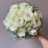 Fleurs ; Roses blanche, oeillets pêche , lisianthus blanc, gypsophile, chardon
