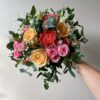 Bouquet de mariée rond serré de roses blanche et gypsophile sans feuillage